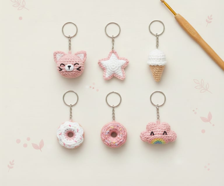 Llaveros hechos a mano con estambre ecológico.